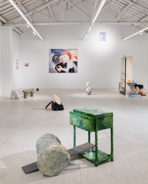 伊兹霍夫近年来的创作始终围绕绘画与雕塑展开。周遭世界的一切都令他着迷——那些怪癖、曲折、失败的尝试、偶然飘进耳中的对话、漫不经心的欢愉与俏皮的残忍,还有长久萦绕的恢弘神话故事,简而言之,是永不停息的琐碎之流,是自我生成的档案库,暗涌着裂痕与矛盾。