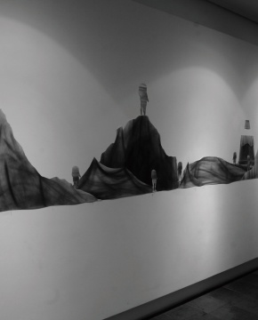 这是一个由绘画衍生出的纸本“布景”实验。我希望它能构成一个松散的剧场。“无主之地”有着蛮荒或者未被标记的意思,同时也是等待着战斗和征服的场所。它是现实渗进幻想中的一条狭缝。“无主之地”描述了两个部分的想象,一是面对未知的选择。二是自我搏斗。它们象征着人们失落的信仰以及矛盾。