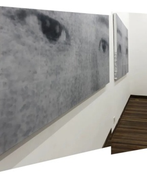 此次展览“近视”中呈现的作品来自陈亮的两个布面绘画系列。其一,是一组被高倍数放大的身份证照片中的眼睛的图像,这些眼睛的主人们都是艺术家周围的朋友,绘画的笔触不带情感,但证件照片的监管属性却被调侃且突破,来自每一个个体的凝视都凝结在画布与观者之间。