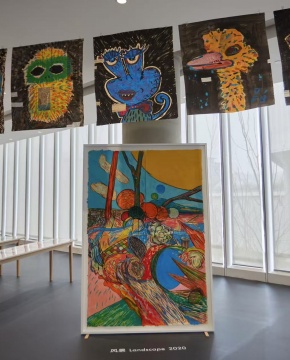展览作品呈现出起承转合的节奏感,以绘画的方法为主要手段,转化为雕塑、壁画、悬挂物等多维互动的丰富空间样貌,延续了陈栋帆以笔触和色彩构成精神空间的持续探索。同时,艺术家也将把展厅的一部分化用为工作室现场,延续他纽约工作室的open studio习惯,融合艺术和日常,邀请观众一道营造“呼吸”绵